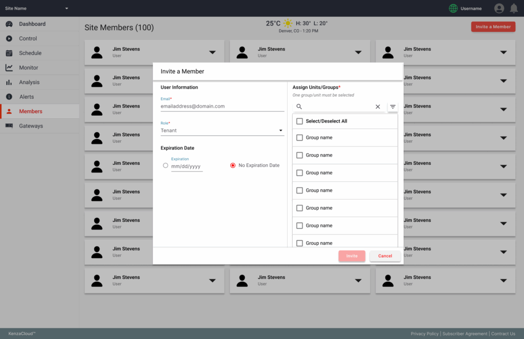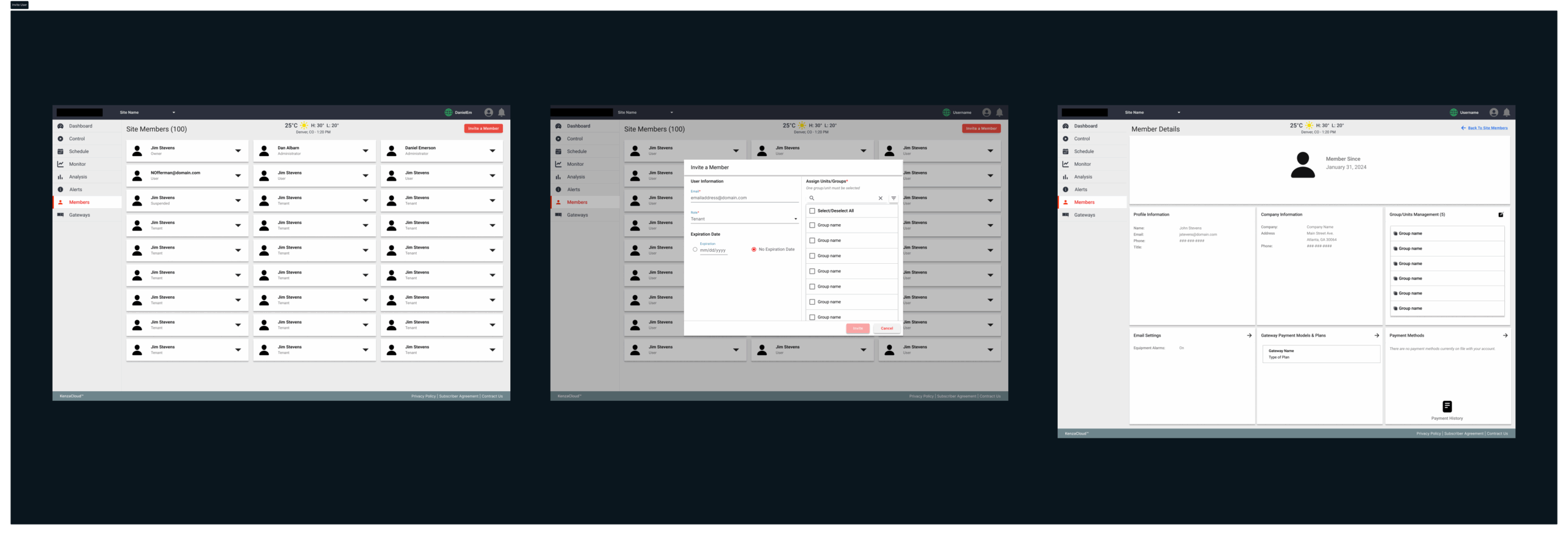 Initially starting off with doing some research into other competitors that had a similar feature and used our existing design system and development framework to make some initial wireframes wireframes and mockups. For the main function of assigning units, I had to use and modify some of the existing frameworks so as to not give any user a new flow they weren’t used to. With both the user information, permissions, and HVAC units selection for a tenant to be assigned to on one module, I wanted all the information to be identifiable and and one-stop approach when a manager or owner is inviting a tenant.