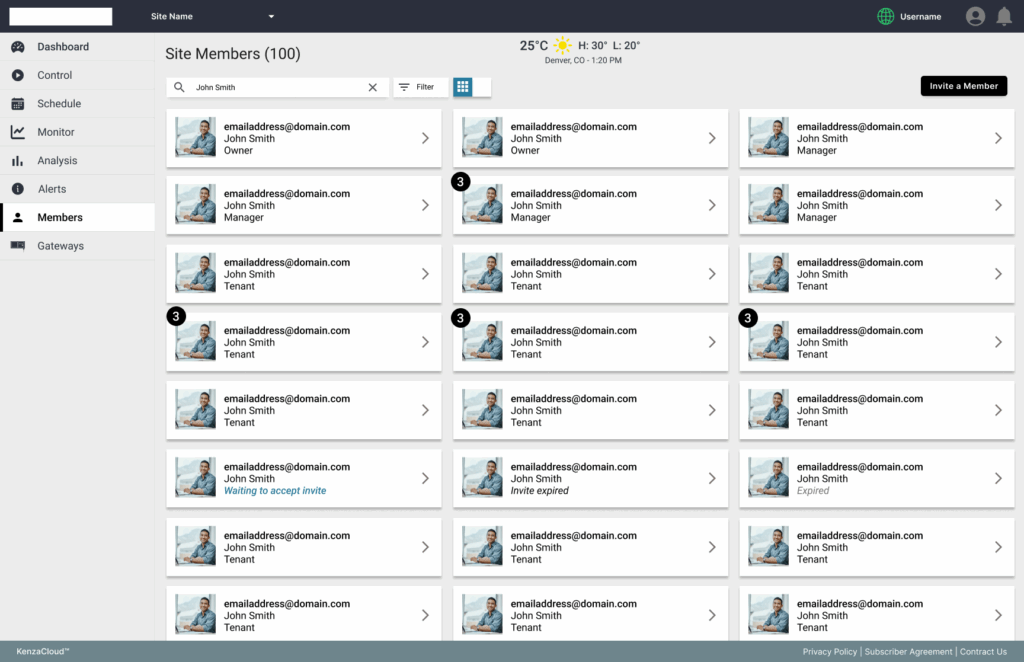 Manger invites the email address of the Tenant to create an account and needs to see if the account was created, what accounts are currently assigned to what HVAC units.
